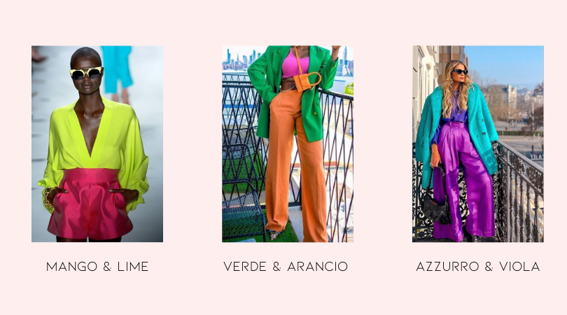 Un esempio lampante è l’accostamento tra una tinta pastello con un Colore fosforescente, il risultato non sarà omogeneo e armonioso, ma sembrerà di essersi “vestiti al buio”. Vediamo in base alla propria stagione di riferimento alcuni abbinamenti cromatici: